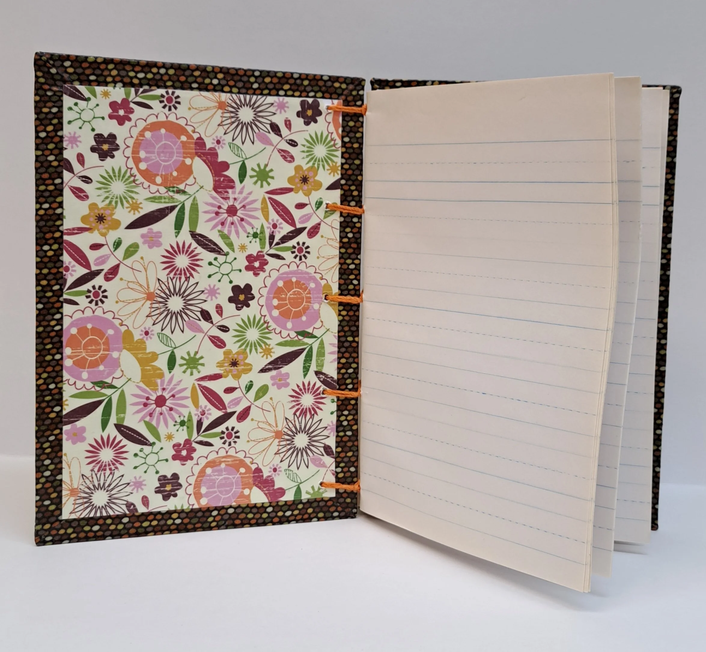 Coptic Stitch book with fabric mod podge cover